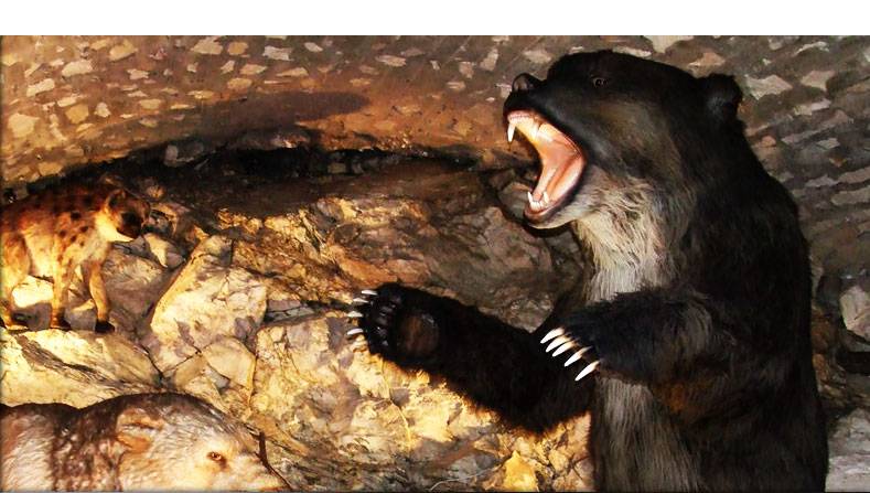 Została odkryta przypadkowo podczas wydobywania marmuru w 1966 roku. Podczas eksploracji znaleziono kości wielu zwierząt plejstoceńskich, w tym niedźwiedzia jaskiniowego (ursus spelaeus), od którego pochodzi nazwa jaskini.